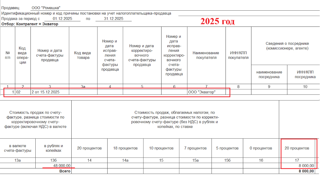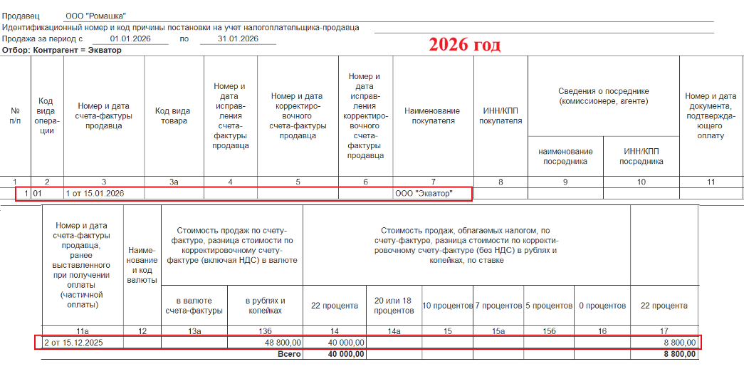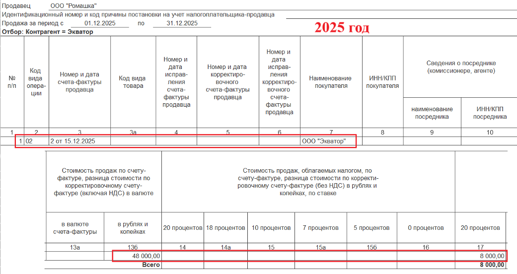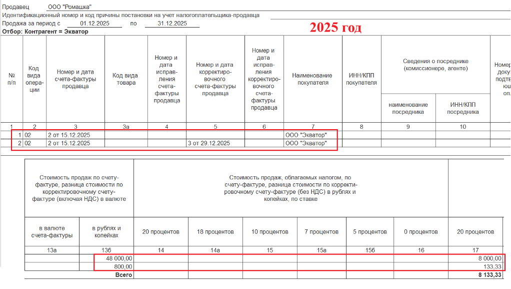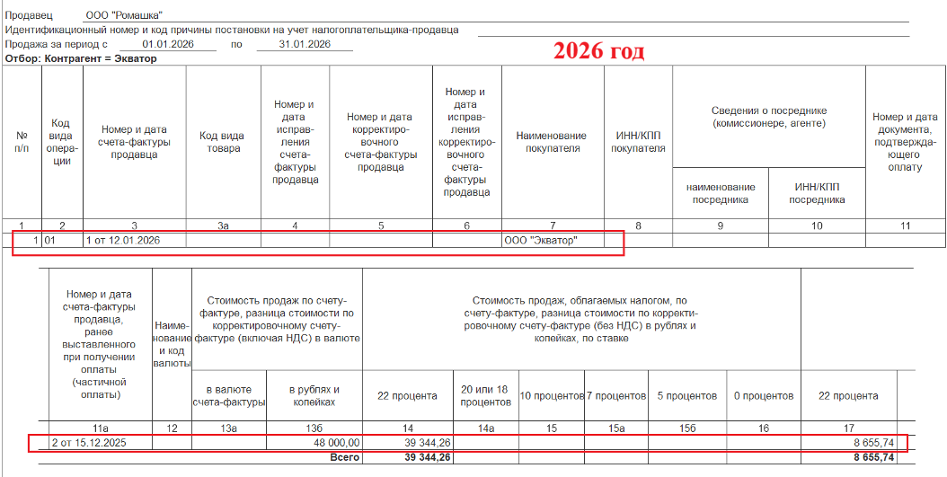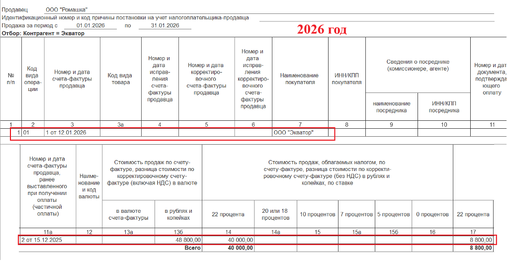 В результате получим записи в Книге продаж: