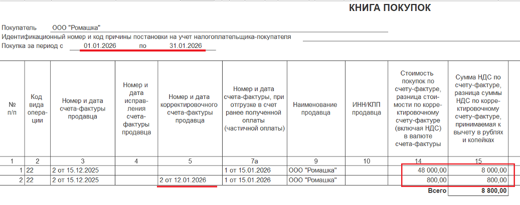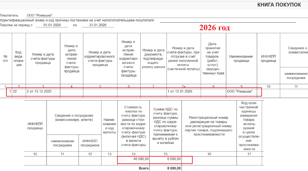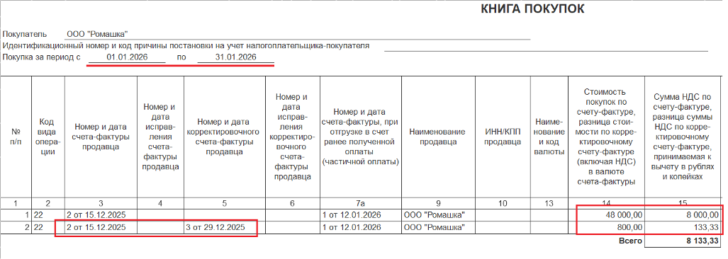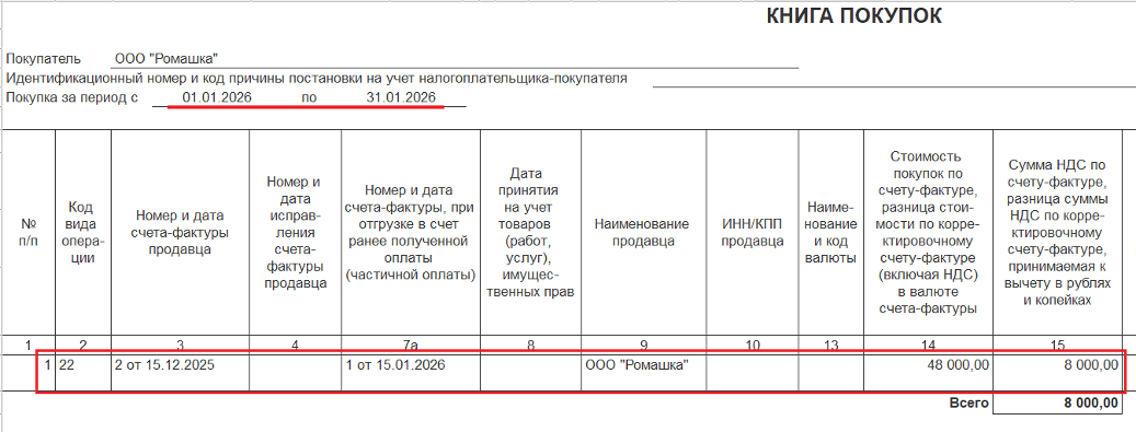 🔹️ в Книге покупок: