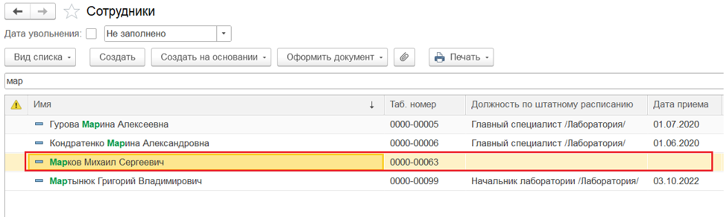 1️⃣ Добавить руководителя в справочник «Сотрудники», чтобы его потом можно было выбрать в документах. Одновременно информация по нему должна будет записаться в справочник «Физические лица». Приказа о приёме при этом по нему создавать не нужно. Например: