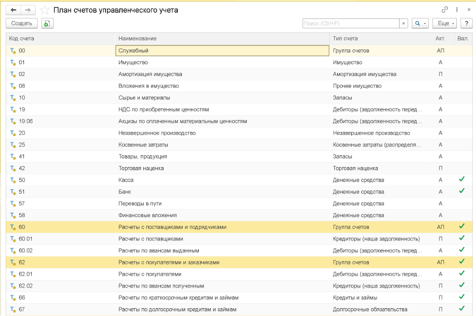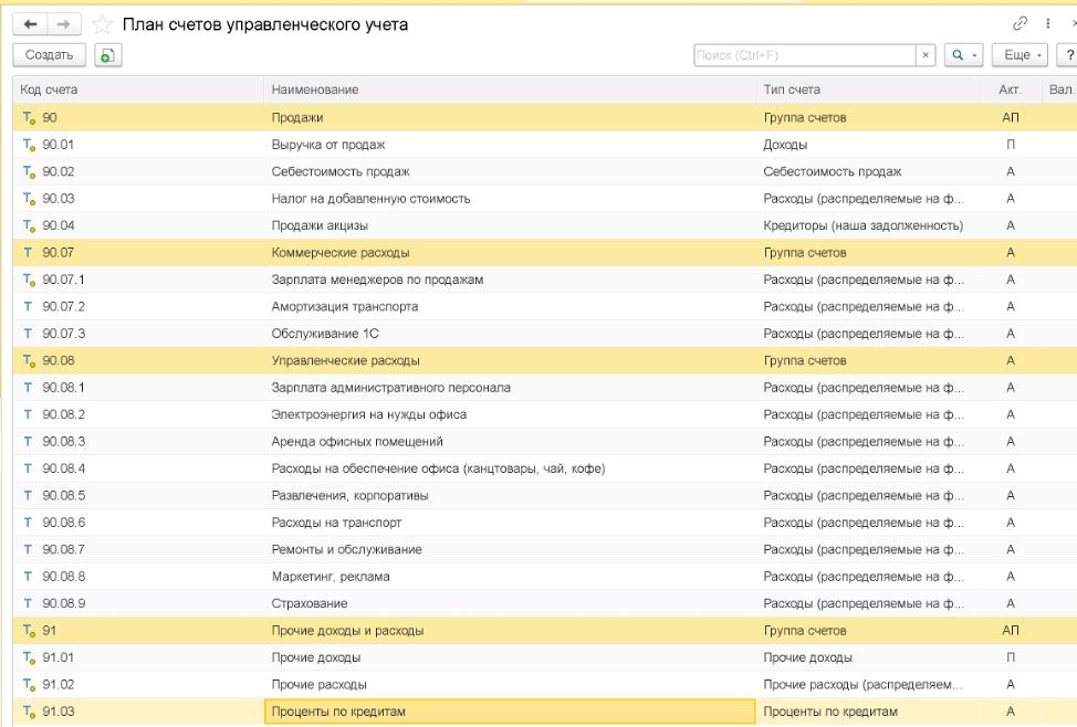 Посмотрим, как выглядит типовой план счетов и какую информацию он дает в управленческие отчеты: