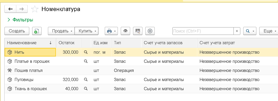УНФ расставляет счета учета затрат и счета учета запасов номенклатуры в зависимости от типа номенклатуры: